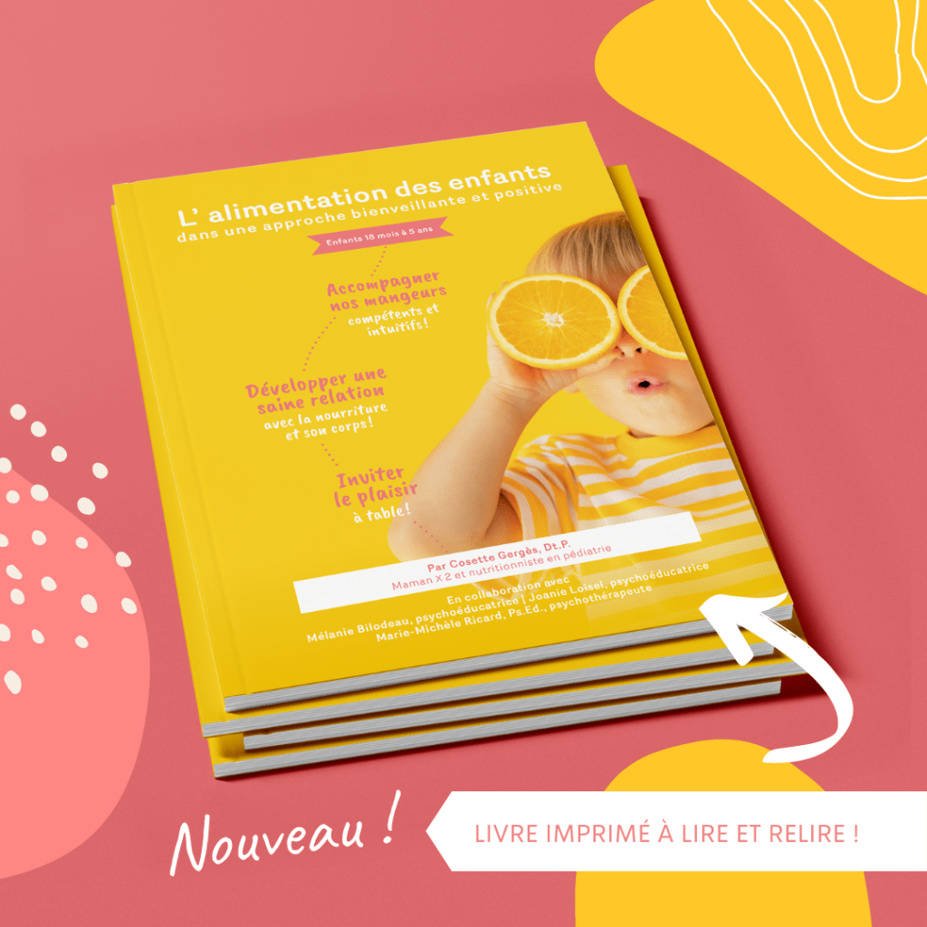 Pour eux et avec eux, vers une saine relation avec la nourriture et son corps. Ce livre s’adresse aux parents d’enfants âgés de 18 mois à 5 ans mais les notions abordées s’appliquent également auprès des enfants d’âge scolaire.